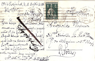 È um postal escrito e assinado pela própria, endereçado á grande artista Maria Amélia de Magalhães Carneiro.